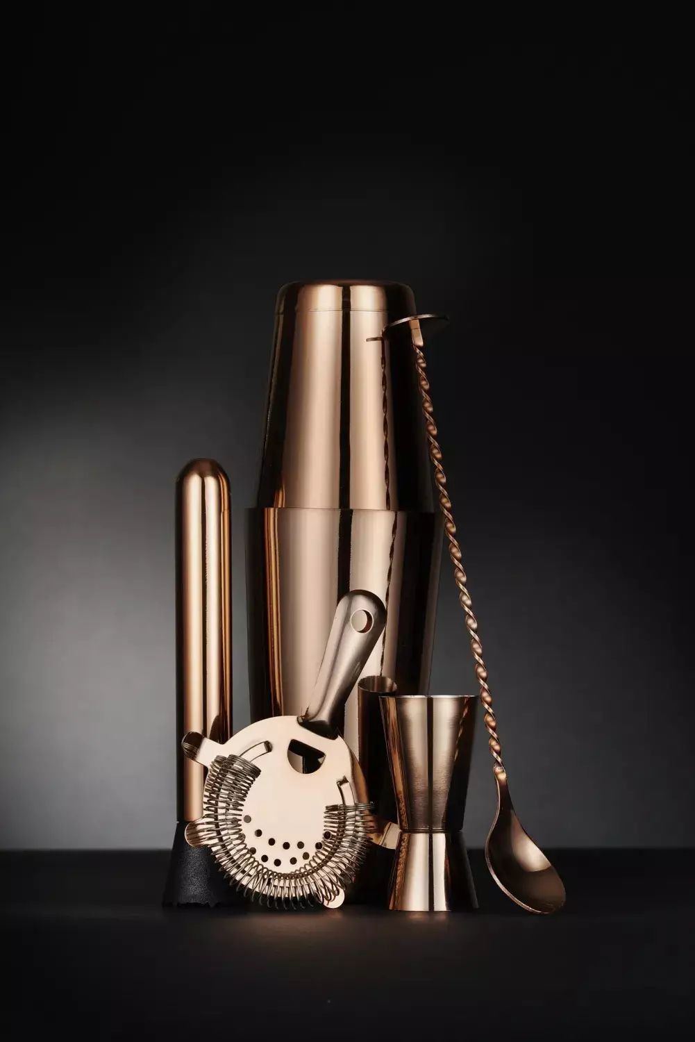 Settiin sisältyy kaksiosainen Boston shaker (500 ml ja 800 ml), perinteinen mitta (25 ml ja 50 ml) ja Hawthorne-siivilä irrotettavalla jousella. Siivilä suodattaa tarkasti jääpalat, hedelmät ja yrtit ja istuu shakeriin tiiviisti.