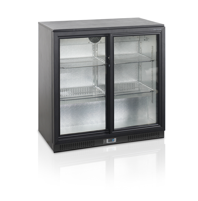 Liukuovilla varustettu Back bar kylmäkaappi juomille.