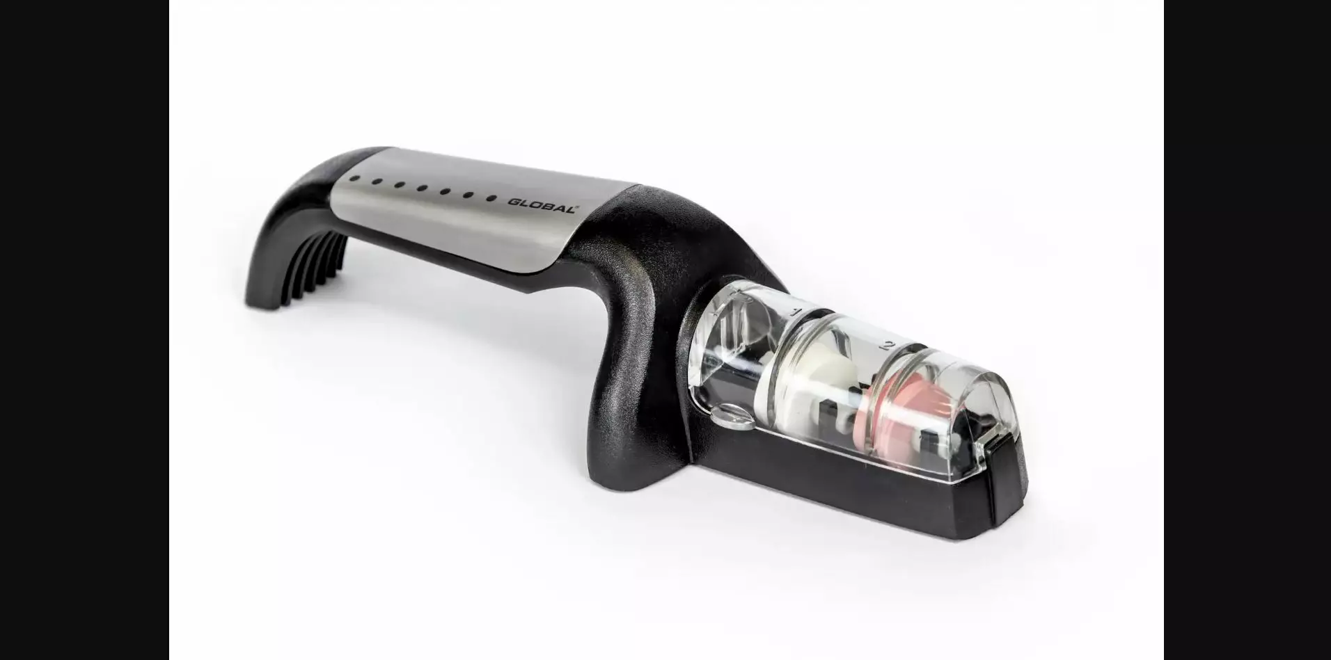 Pidä keittiöveitsesi terävinä teroittamalla niitä ajoittain Globalin märkäteroittimella. Sinun tarvitsee vain täyttää veitsen teroitin vedellä ja tehdä veitsellä muutama veto eri pyörien läpi, niin terävyys on kuin uusi. Märkähiomakoneessa on hiomalaikat kahdella eri karkeudella: keskikarkealla (240 karkeutta) ja hienolla (600 karkeutta).