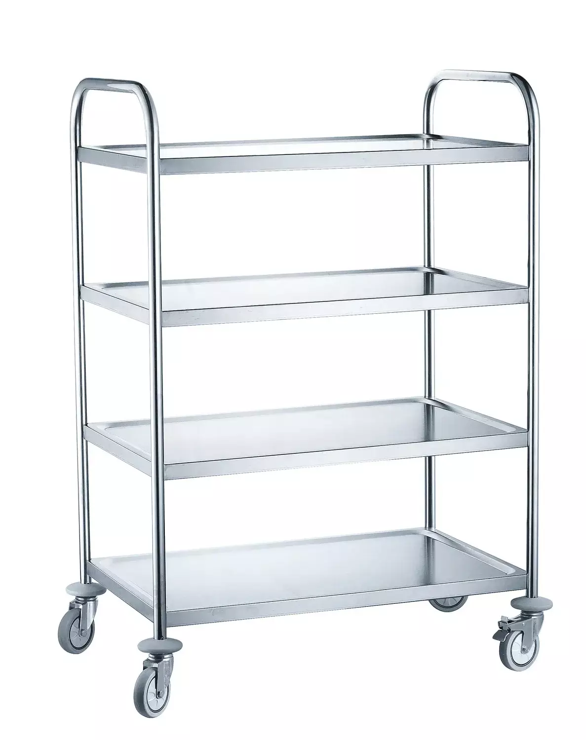 Ruostumattomasta teräksestä valmistettu 4-kerros tasovaunu tarjoaa kestävän ja helposti liikuteltavan ratkaisun tavaroiden kuljettamiseen ja säilyttämiseen. Soveltuu erityisesti ammattikäyttöön, kuten keittiöihin, sairaaloihin ja varastoihin. Tasovaunu toimitetaan osina ja on nopea koota.