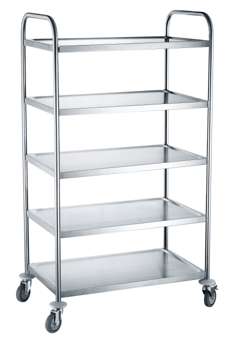 Korkea viisitasoinen teräsvaunu toimii käytännöllisenä tuotteiden siirtely/ säilytyskalusteenä. Jokaisen hyllytason kantavuus 50kg. Kaksi renkaista on lukittavia. Vaunun koko: 910x590x1560mm. Toimitetaan osina.