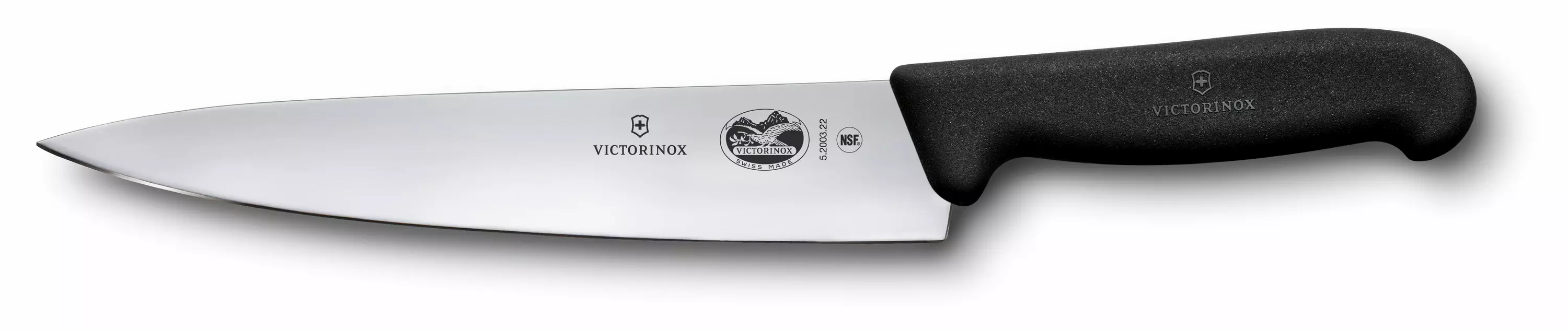 Laadukas kokkiveitsi on sekä ammatti- että kotikokin tärkein työväline ja jokaisen keittiön yleisveitsi. Tämä suhteellisen leveäteräinen, keskikokoinen kokkiveitsi sopii monenlaiseen pilkkomiseen, koska terän pituus riittää kookkaampienkin raaka-aineiden käsittelyyn. Terä on valmistettu ensiluokkaisesta, tarkoitukseensa parhaalla mahdollisella tavalla sopivasta terässeoksesta. Lopputuloksena on kestävä veitsi, joka pysyy pitkään terävänä teroitusten välillä. Hygieeninen Fibrox-kahva on muotoiltu ammattikäytön ergonomiavaatimukset huomioiden ja luistamattomana siitä saa turvallisen, pitävän otteen jopa märillä käsillä. - Terän pituus: 22 cm - Materiaali: TPE, ruostumaton teräs - Tuotesarja: Fibrox Victorinox Fibrox on ammattikäyttöön suunniteltu veitsisarja, ja siten erinomainen valinta myös korkeaa laatua arvostavan kotikokin keittiöön.