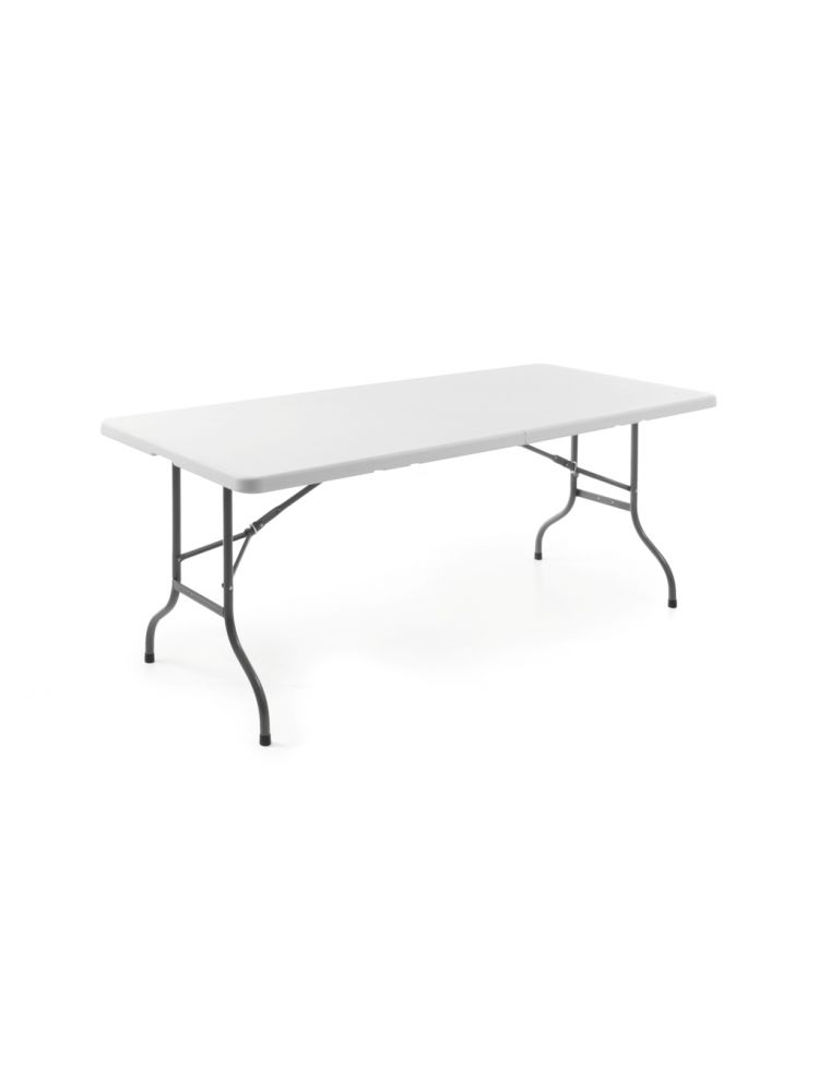 Näppärä kasaantaittuva pöytä. Pöydän koko avattuna 1520x700x740mm. Kantokahva.
