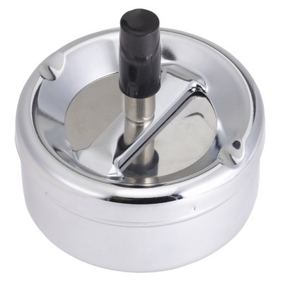 Kromattu tuhkakuppi painikkeella. Soveltuu sisäkäyttöön.
