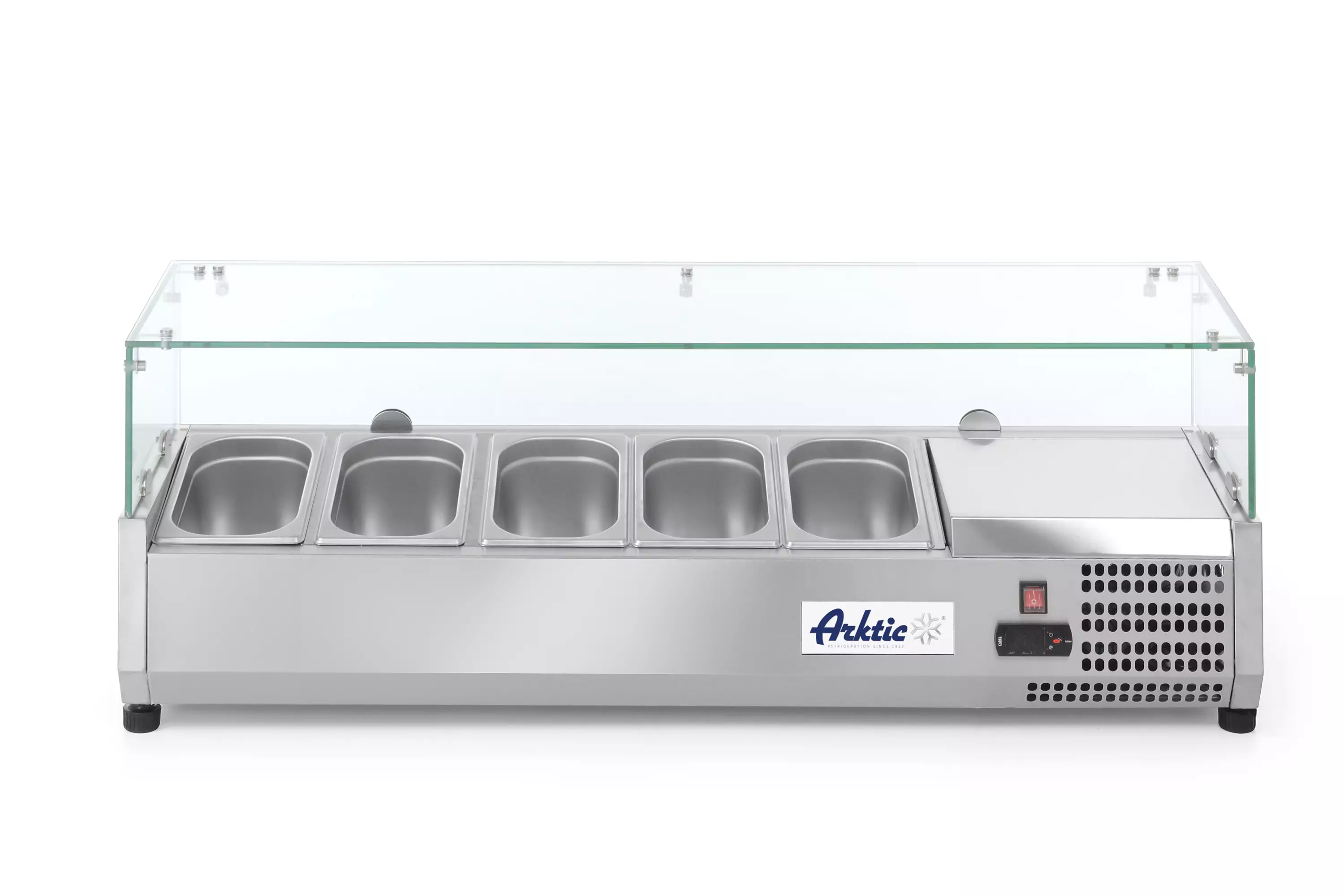 Kylmäkaukalo laseilla GN 1/4-astioille on suunniteltu ruoan esillepanoon ja viileänä pitämiseen. Lujatekoinen rakenne, karkaistusta lasista tehty suoja ja tehokas jäähdytysratkaisu tekevät siitä käytännöllisen valinnan myyntitiskeihin, kahviloihin ja itsepalvelulinjastoihin. Selkeä esillepano ja kestävä rakenne Kaukalo sopii GN 1/4 -astioille, joiden korkeus on enintään 150 mm. Laitteen ulko- ja sisäosat on valmistettu korkealaatuisesta ruostumattomasta teräksestä, ja edessä oleva karkaistu lasi suojaa sisältöä ja mahdollistaa hyvän näkyvyyden asiakkaille. Staattinen jäähdytys viileään säilytykseen Sisäaltaan pohja toimii viilennyspintana, johon EMBRACO-kompressori tuottaa staattista jäähdytystä. Järjestelmä säilyttää sisälämpötilan kylmänä ja toimii tasaisesti jopa 32 °C:n ympäristössä 60 % suhteellisessa kosteudessa. Helppokäyttöinen ja tehokas Laitteessa on digitaalinen näyttö ja elektroninen termostaatti lämpötilan säätöön. Kompressori EMT45HLR (1/5 hv) ja R600a-kylmäaine (40 g) tukevat vakautta ja vähäistä kulutusta. Automaattinen sulatus helpottaa ylläpitoa ja keskimääräinen sähkönkulutus on 1,55 kW/vrk. Vakaa sijoitus ja hyvä eristys Neljä muovijalkaa pitävät laitteen vakaana. 40 mm eriste (C5H10-materiaali) auttaa säilyttämään halutun lämpötilan. Kylmäkaukalo sopii ilmastoluokan 5 vaatimuksiin.