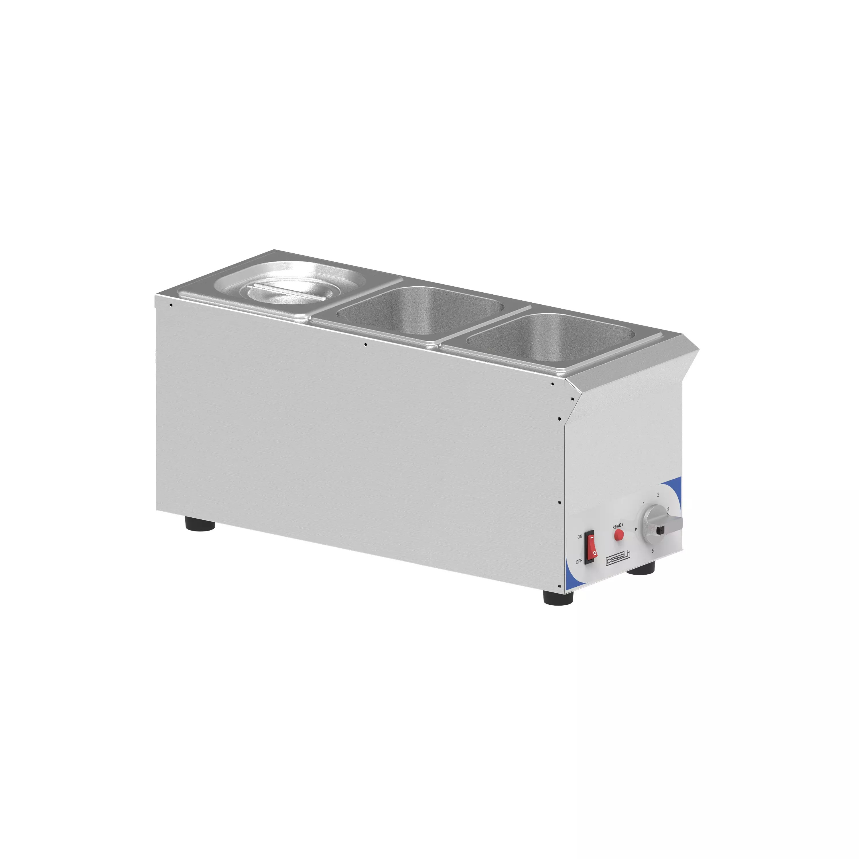 Ruostumatonta terästä. - Lämpötilansäätö: 40-95°C. - Käytettävien astioiden suurin syvyys 150 mm. - Mukana 3x GN 1/6-150 mm teräksistä astiaa kannella ja 3 teräskauhaa. - Kytkin... Lue lisää
