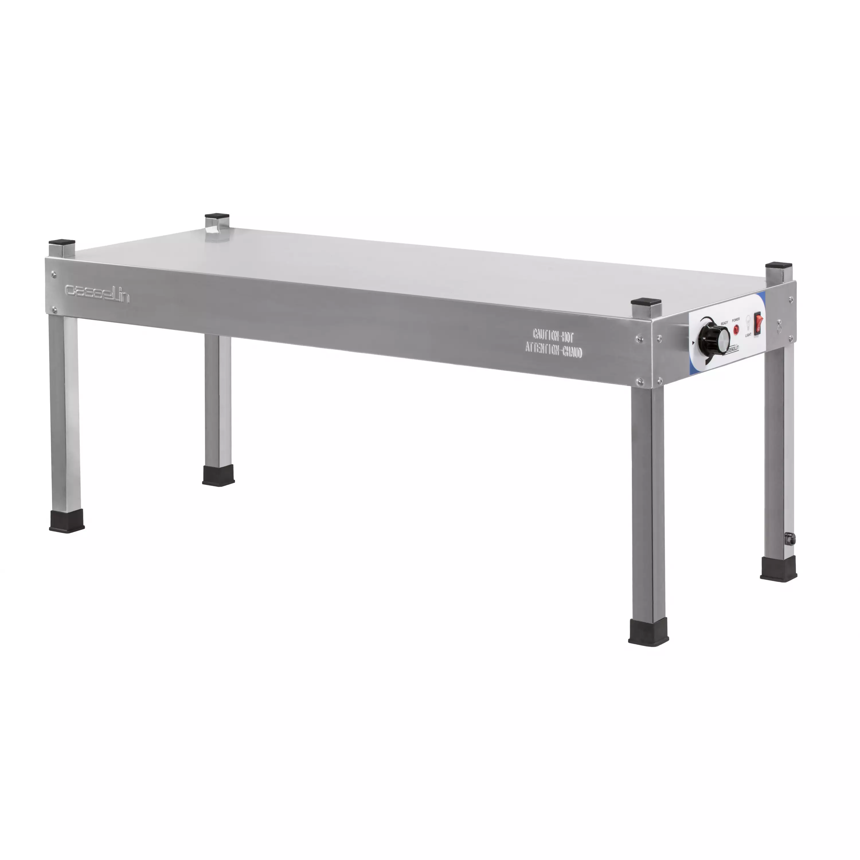 Pinottava pöydälle laitettava lämpösäteilijä jonka alle ja päälle voit laittaa annoksia odottamaan tarjoilijaa. Lämpösäteilijässä on valo sekä säädettävä lämpötila 70°C. Liukumattomat jalat. Tuotteen mitat: 1200 x 380 x 402mm. Jalkojen väliin jäävä tila 1120 x 320mm. Sähkö 2 kW / 230V.