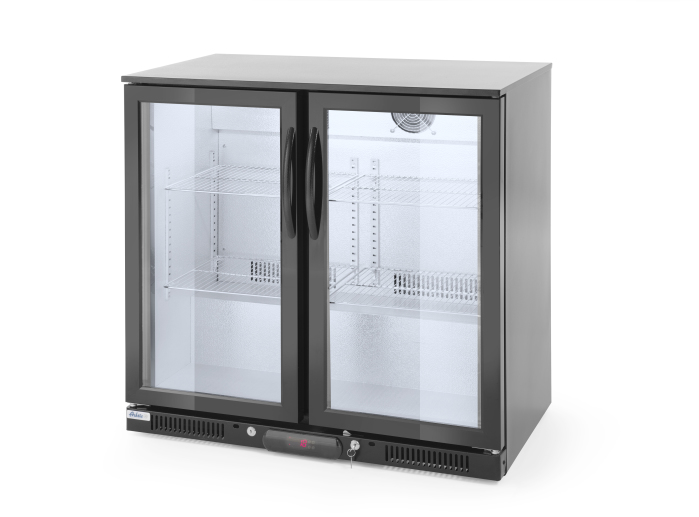 Led-valaistu matala kaksiovinen juomakaappi. Lukittavien ovien lasi valmistettu karkaistusta lasista. Säädettävät jalat. Kylmäaine R600a. Lämpötila-alue: 2-10°C.