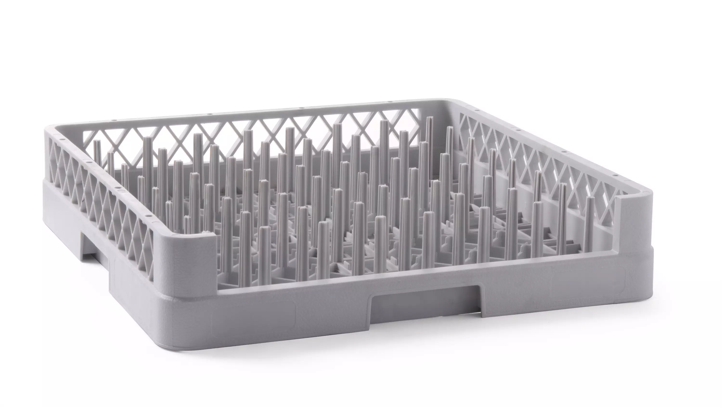 Lautaskori yhdellä avoimelle päädyllä. Valmistettu polypropyleenista. Mitat 500x500x(H)100mm.
