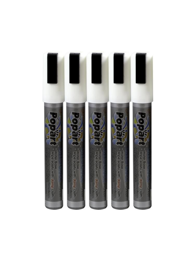 Ohuet liitutaulutussit vinolla kärjellä. Paketissa viisi valkoista tussia. Kirjoitusleveys 2-6mm.