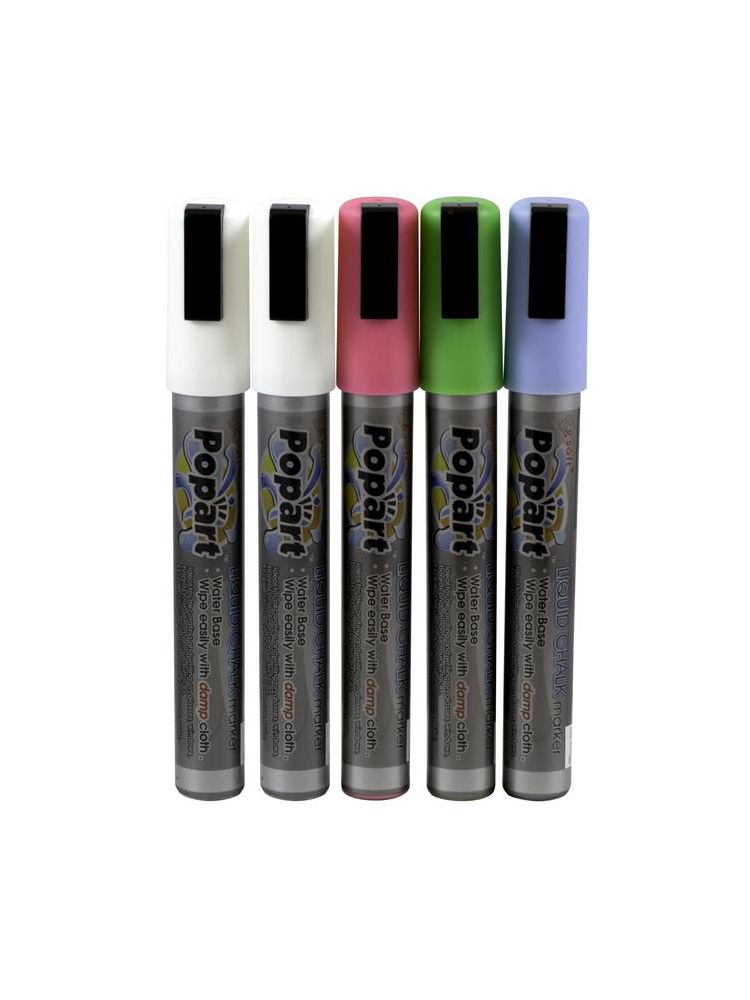 Ohuet liitutaulutussit vinolla kärjellä. Paketissa kaksi valkoista, vihreä, pinkki ja sininen. Kirjoitusleveys 2-6mm.