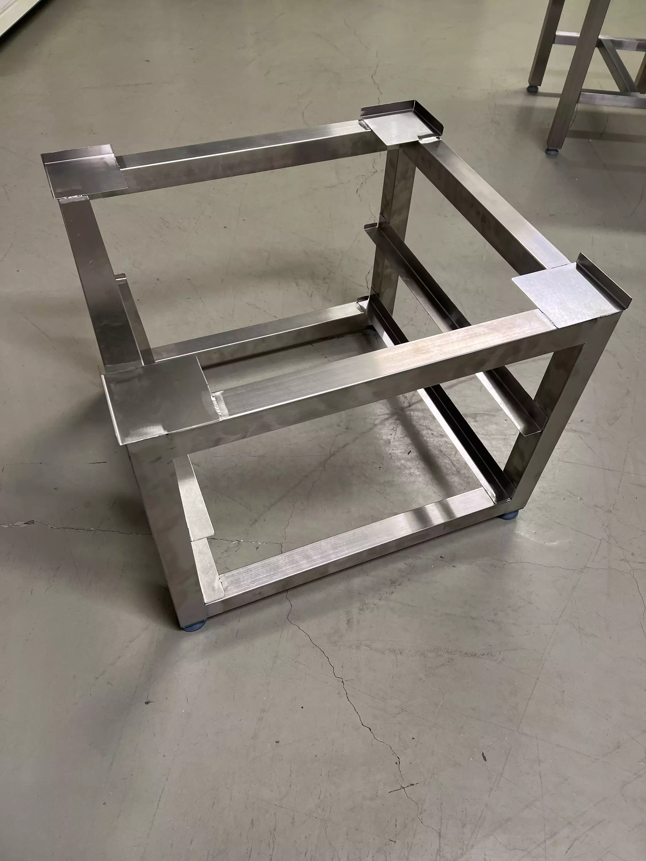Jalusta luukkutiskikoneelle kahdella korijohteella. Runko hitsattu 4cm x 4cm putkesta. Mitat: 600 x 555 x 460mm +säätöjalat. Kulmalevyjen koko 100 x 100mm.