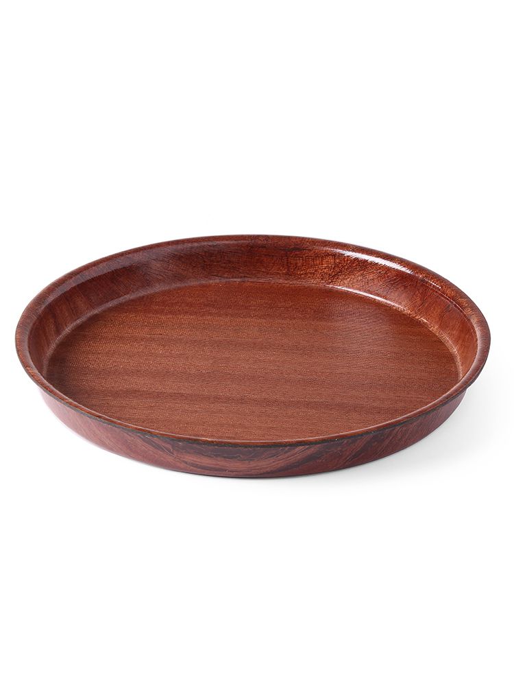 Mahongin värinen korkealaitainen pyöreä kitkapintatarjotin tarjoiluun.