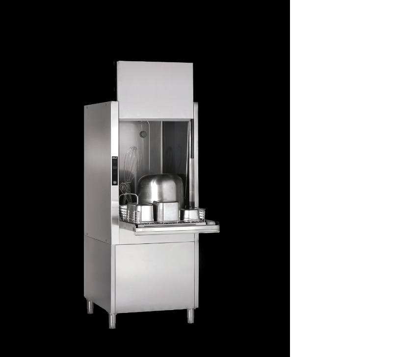 Pot & Utensil Washer - Front Loading Execution on valmistettu kestävästä AISI 304 -ruostumattomasta teräksestä. Kaksoisvaippainen eristetty runko ja muotoiltu vastapainotettu eristetty ovi varmistavat pitkäikäisyyden ja luotettavuuden. Ergonominen ruostumattomasta teräksestä valmistettu kahva lisää käyttömukavuutta ja turvallisuutta. Pesukoneessa on myös taitettava ovi vakiona.