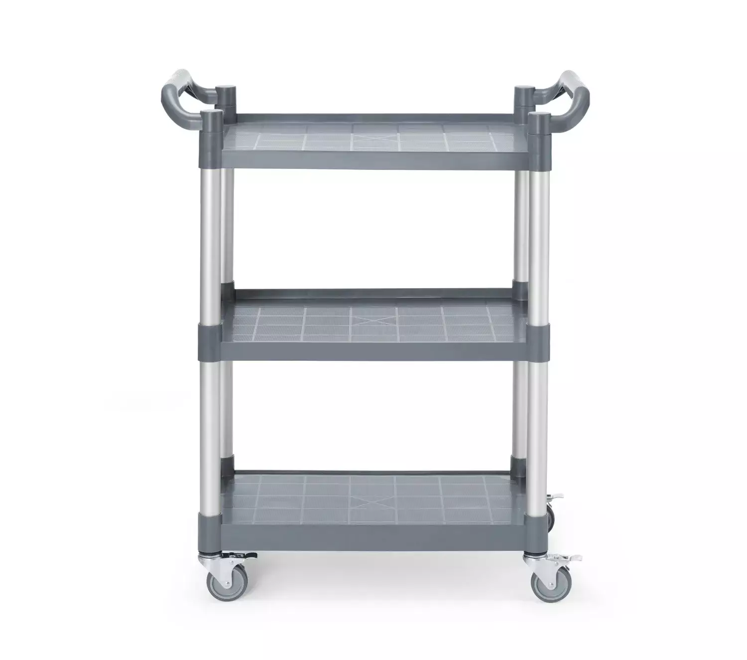 Muovinen 3-kerros tarjoiluvaunu helpottaa työskentelyä liikuteltavuutensa ja selkeän rakenteensa ansiosta. Yläkerros on asetettu ergonomisesti sopivalle korkeudelle, mikä vähentää kurottelua ja tuo käyttömukavuutta. Vaunu sopii astioiden ja ruokien siirtämiseen, tavaroiden varastointiin tai apupöydäksi vaihtelevaan ympäristöön.