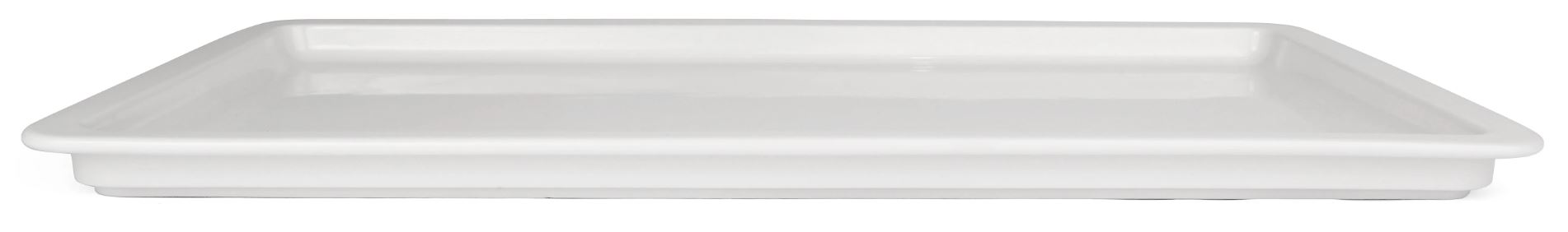 Posliinista valmistettu tarjoiluvati. GN 1/1. Korkeus 25 mm. Mitat: 53x32,5x2,5 cm. Konepestävä.