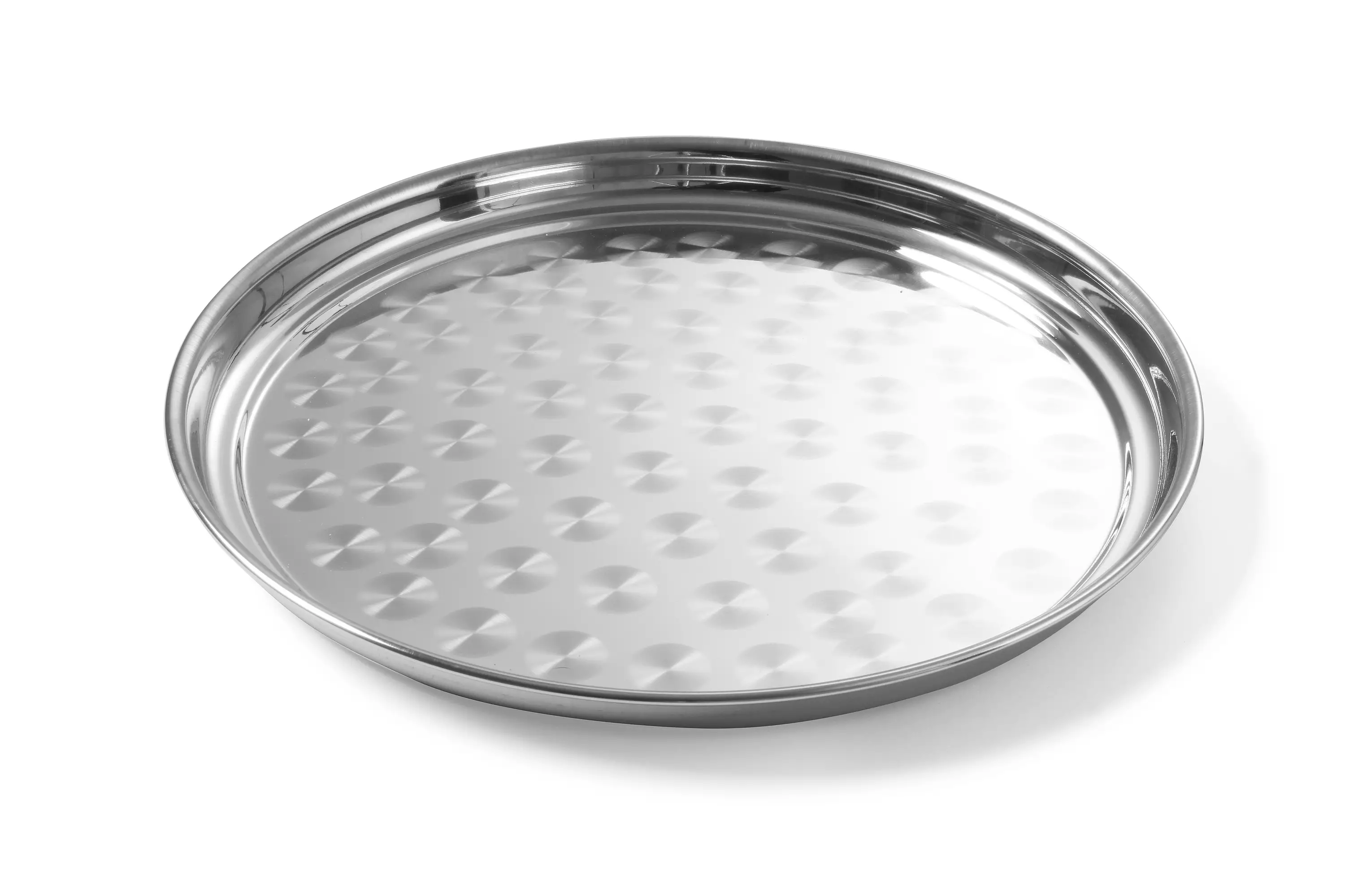 Tyylikäs teräksinen tarjotin. Konepestävä.