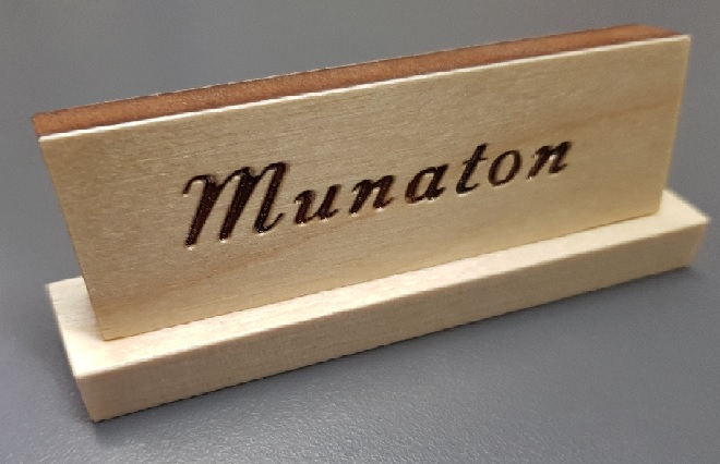 Puinen ruokavaliokyltti. Materiaalipaksuus on n. 11 mm. Leveys 90 ja korkeus 40 mm. Tuotteet on pintakäsitelty puuvahalla, joka kestää nihkeällä liinalla puhdistamisen.