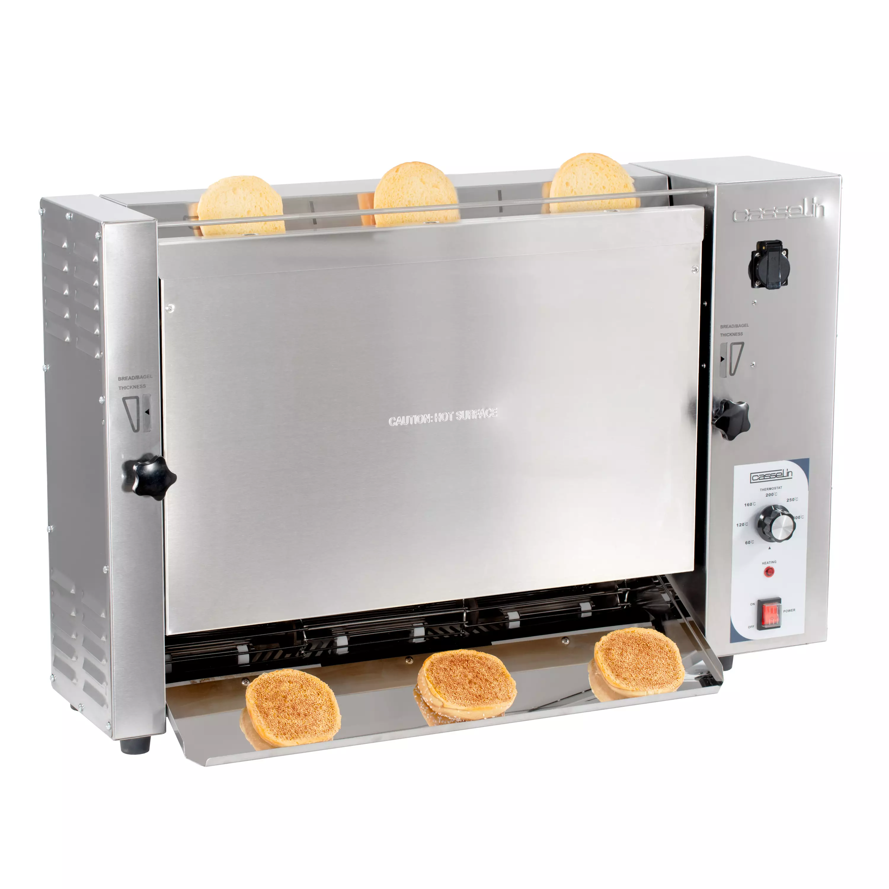Ruostumattomasta teräksestä valmistettu runko - ON/OFF- virtakytkin - Automaattinen kuljetin - Kolm e aluetta: hampurilaissämpylän pohjalle, keskiosalle ja kannelle. - Paahtoaika 24 sekun tia -... Lue lisää