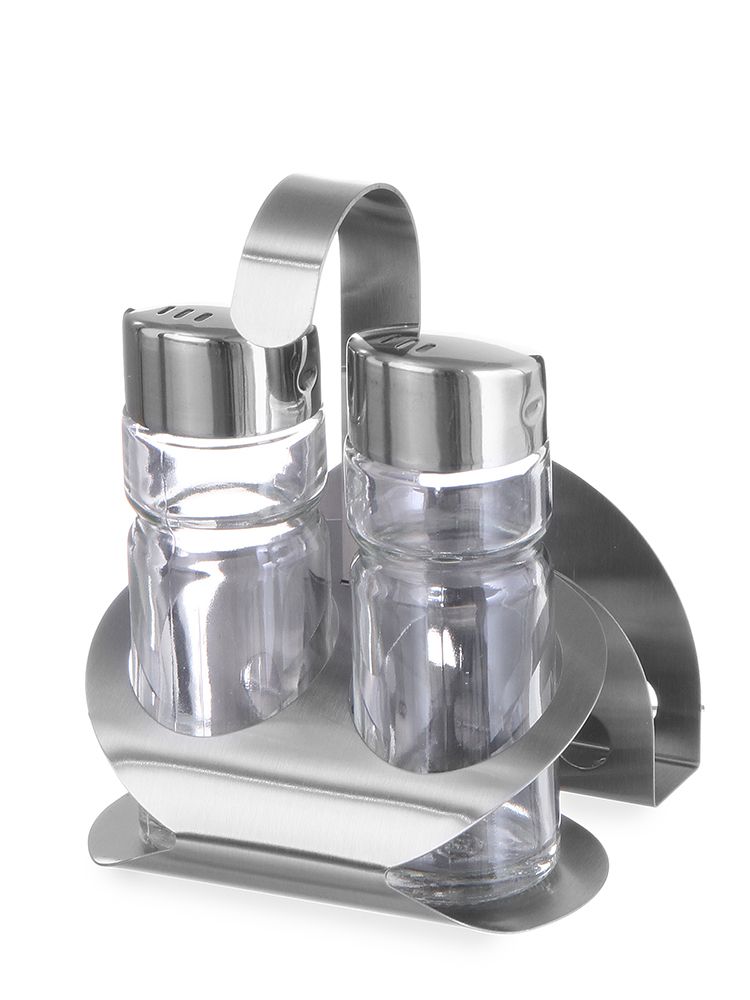 Kolmeosainen maustesetti, suolalle, pippurille ja serveteille.