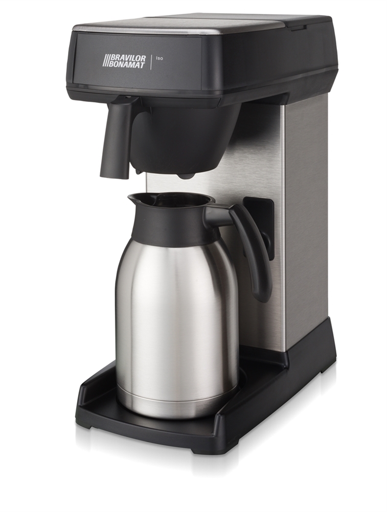 Bravilor Bonamat Iso, on käytännöllinen termoskahvinkeitin 2L:n termoksella (sis. toimitukseen) Helppo käyttää ja huoltaa. Ei tarvitse vesiliitäntää. Suodatusaika noin 6min. / kannu. Valmistusteho noin 18l/h.