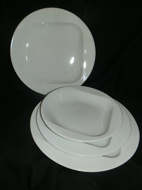 Korkealaatuista valkoista hotelliposliinia. Vahvistetut reunukset, kestävä laatu. Korkea kestävyys naarmuja, lohkeamia ja lämpovaihtelua vastaan.