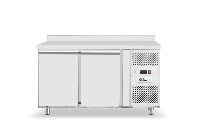 Työtaso kahdella kylmäkaapilla. Valmistettu korkealaatuisesta ruostumattomasta teräksestä (paitsi takaulkoseinä galvanoitua terästä). Sisältää kaksi säädettävää hyllyä 330x545 mm. Embraco kylmäkone. Puhallin jäähdytys. Digitaalinen näyttö. Suunniteltu toimimaan max. +43°C ympäristolämpotilassa. Kylmäaine R600a. Mitat: 1360x700x(H)850mm. Lämpotila-alue: -2 /+8 °C. Sähkö: 230V/250W.