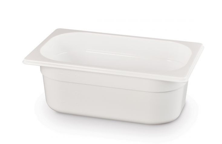 Laadukkaat GN-astiat valkoisesta polykarbonaatista. Ei ime itseensä hajuja tai makuja. Konepestävät ja pinottavat astiat kestävät -40° - +110°C lämpötiloja.