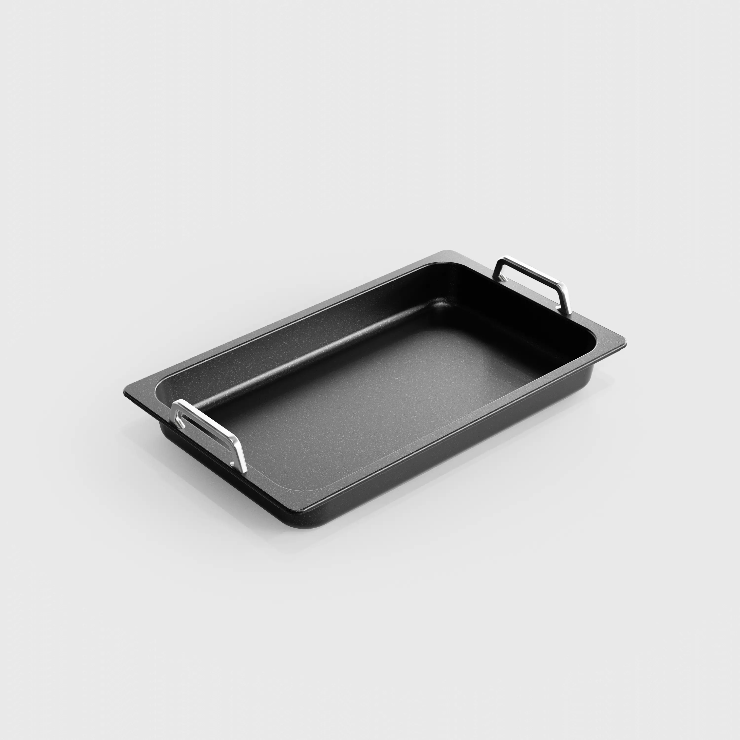 AMT Valualumiini GN 1/1-55 Kahvoilla. Materiaali kovaa käyttöä kestävää valualumiinia tarttumattomalla, korkeatasoisella ja kestävällä pinnoitteella. Uuniin ja liedelle, mutta ei käy... Lue lisää