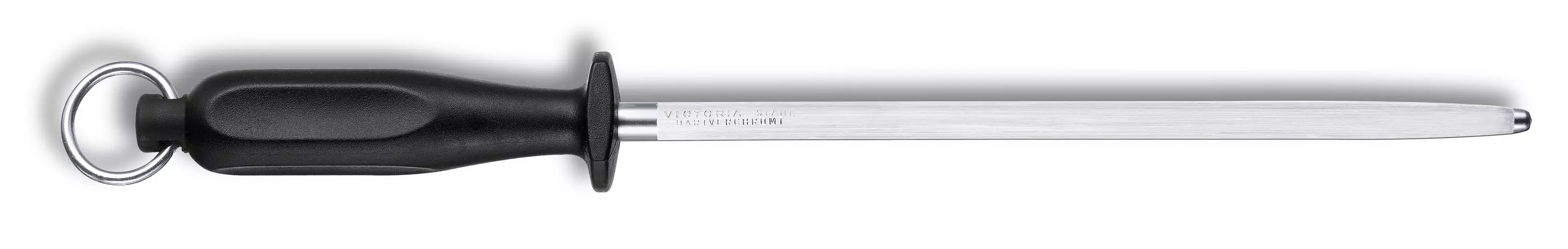 Victorinoxin teräksinen pyöreä teroituspuikko veitsien huoltoon. Teroituspuikolla pidät veitsesi kunnossa. Puikolla voit teroittaa, veitsien lisäksi, myös muita välineitä helposti. Puikossa on ripustusrengas, joten sitä voi säilyttää monella eri tavalla. Puikossa lukeva Victoria tarkoittaa sitä, että puikossa on käytetty eri terästä kuin Victorinoxin veitsissä. Puikon pituus 25cm. Kokonaispituus 38,5cm.